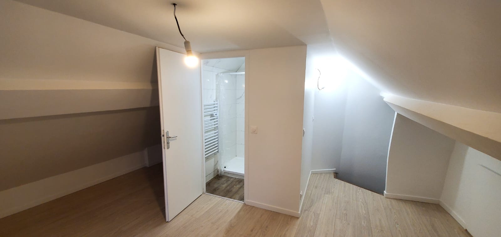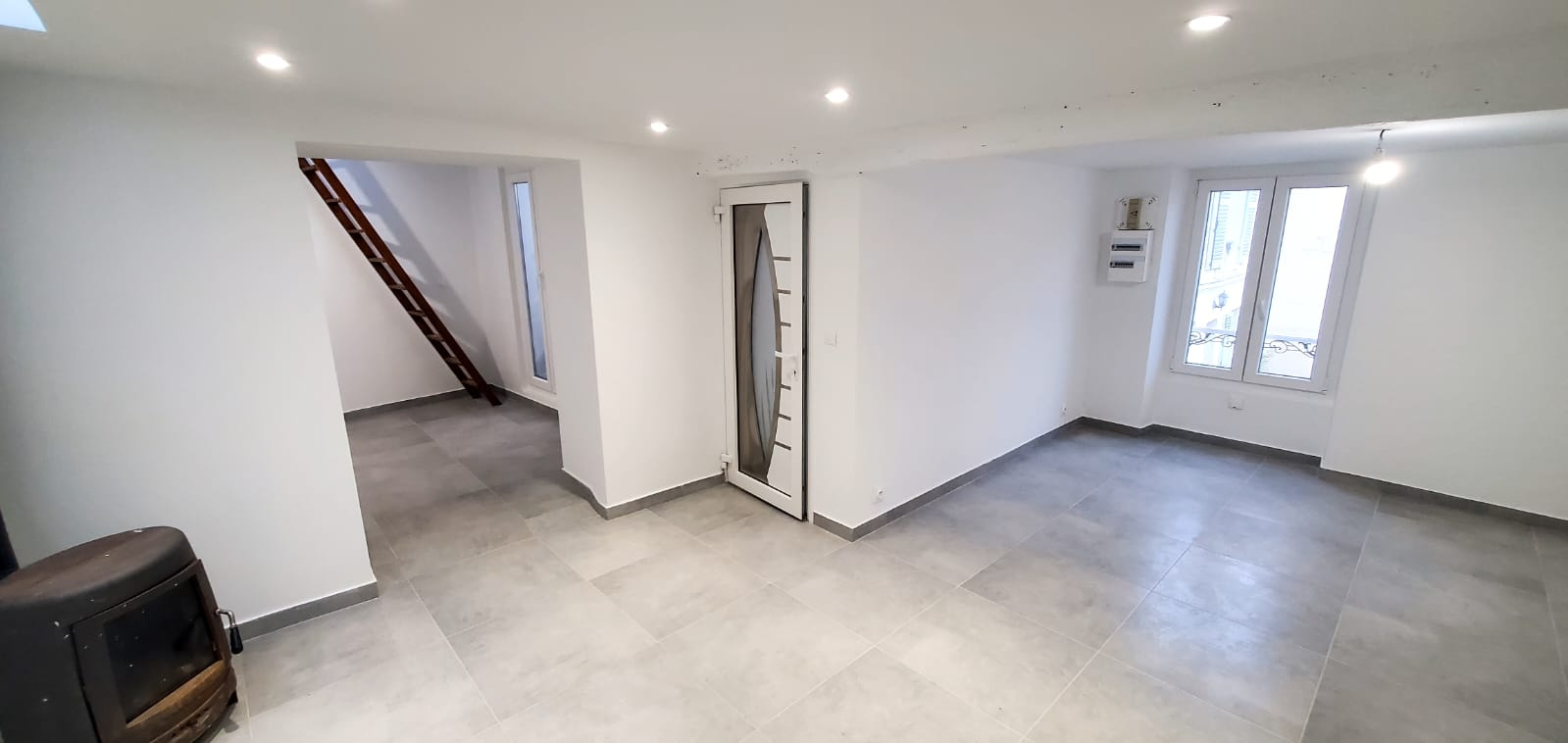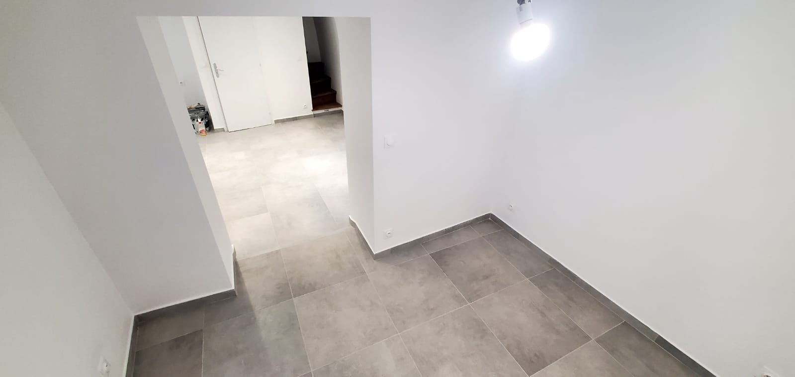 A louer au centre d'Annet sur Marne, maison de ville MEUBLEE (lit, cuisine équipée-aménagée vaisselle, canapé) et entièment rénovée de type F2 d'environ 40 m2 et composé : Au RDC un salon-séjour, avec mezzanine (pouvant servir de stockage) , cuisine US aménagée et équipée, un wc indépendant avec lave mains; au 1 er étage : une chambre avec salle d'eau et wc et rangement sous pente