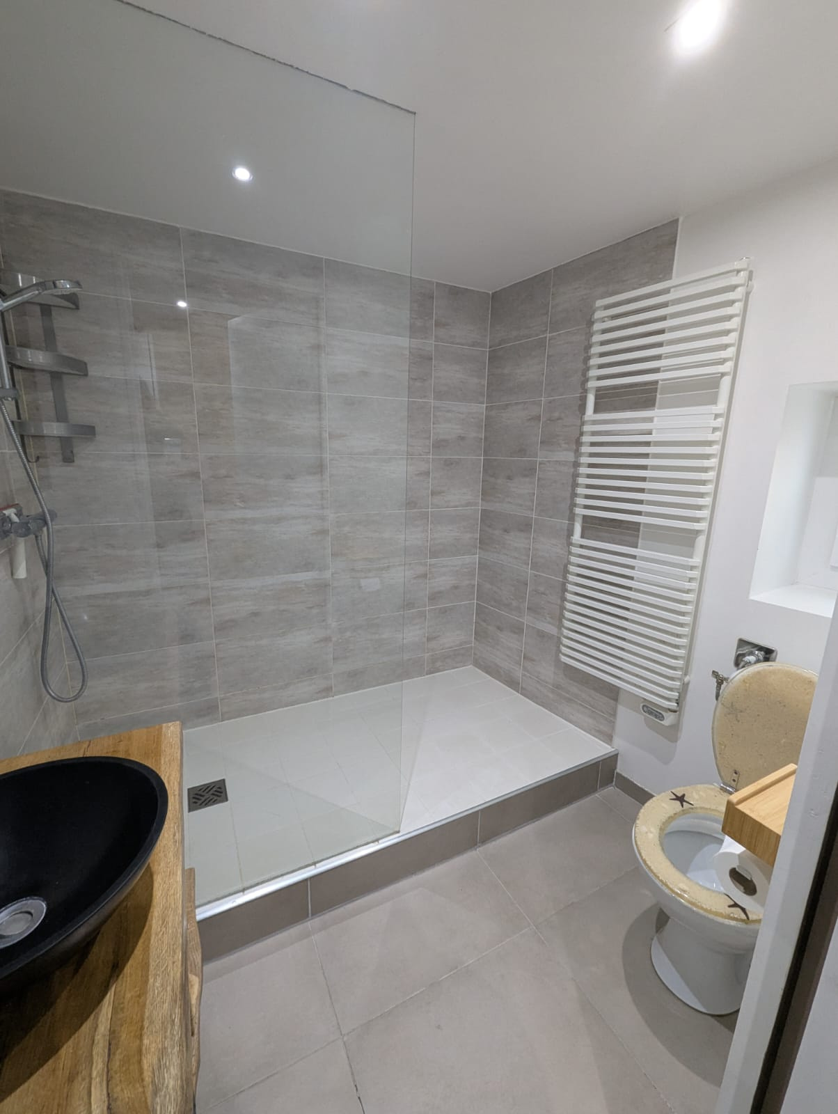Salle d'Eau : Moderne, avec une douche à l'italienne spacieuse, un WC et fenêtre pour une aération optimale.