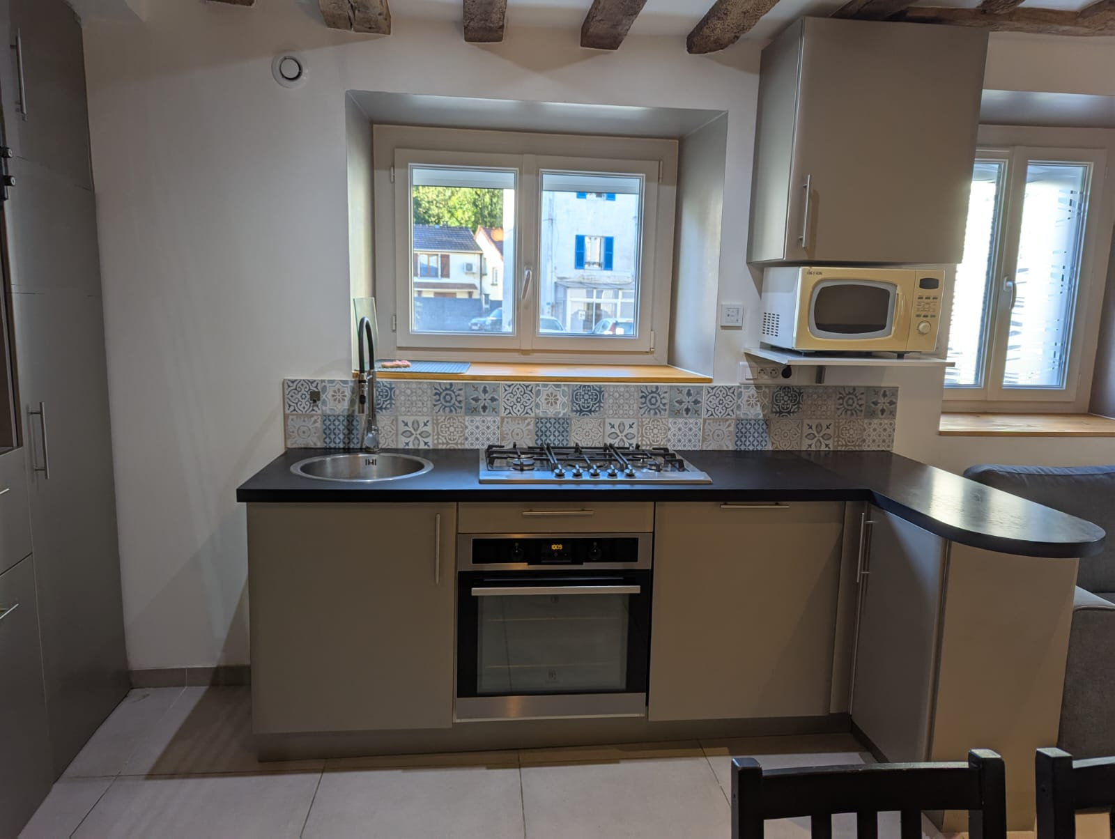 Cuisine : Entièrement équipée et aménagée (plaques, four, hotte, rangements) il ne reste plus qu'à cuisiner !