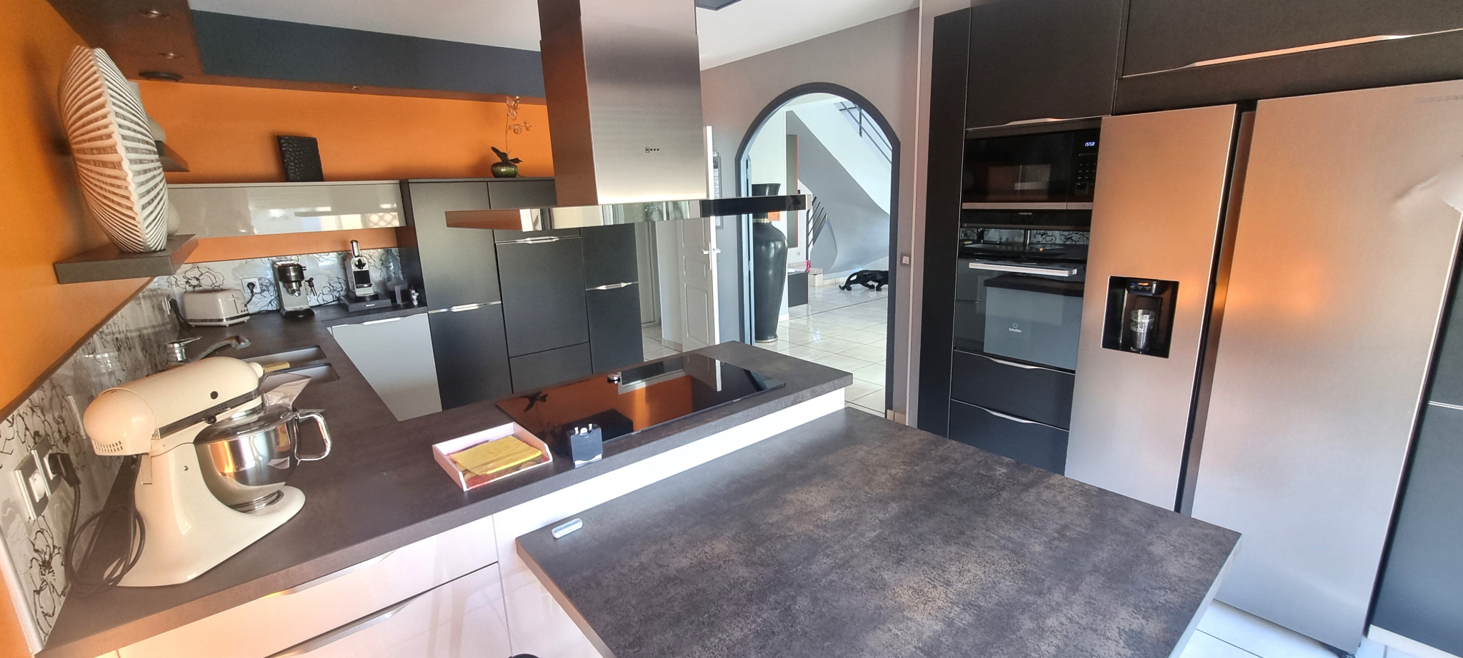 Cuisine : Un espace de 18,66 m2 entièrement aménagé et équipé, ouvert sur la salle à manger pour plus de convivialité.
