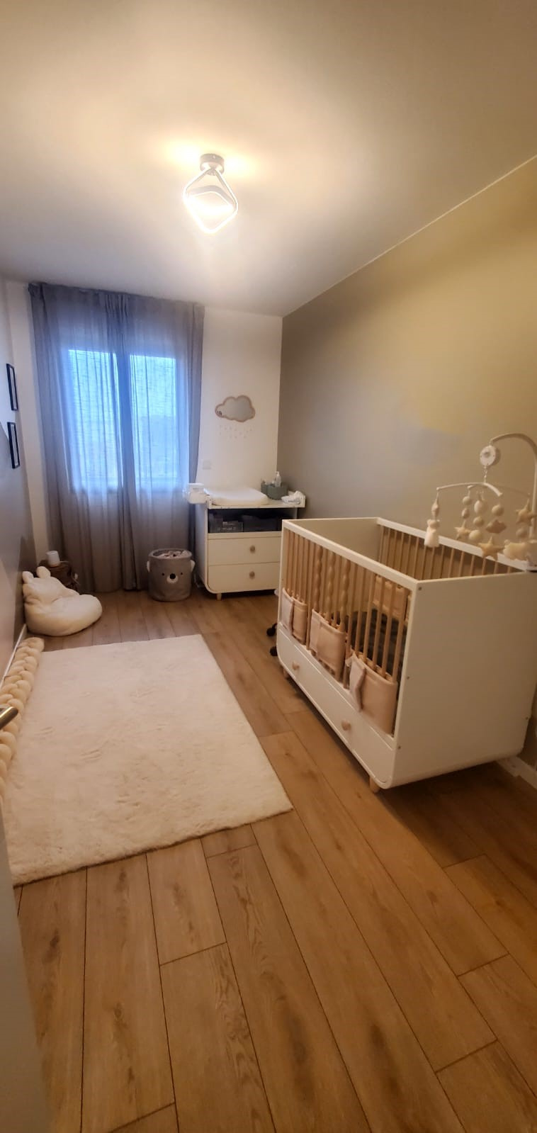 Les combles sont déjà isolés, parquetés et peints, prêts à être finalisés. Il ne reste plus qu'à installer les Velux (ou fenêtres de toit) pour créer une troisième grande chambre ou une salle de jeux !